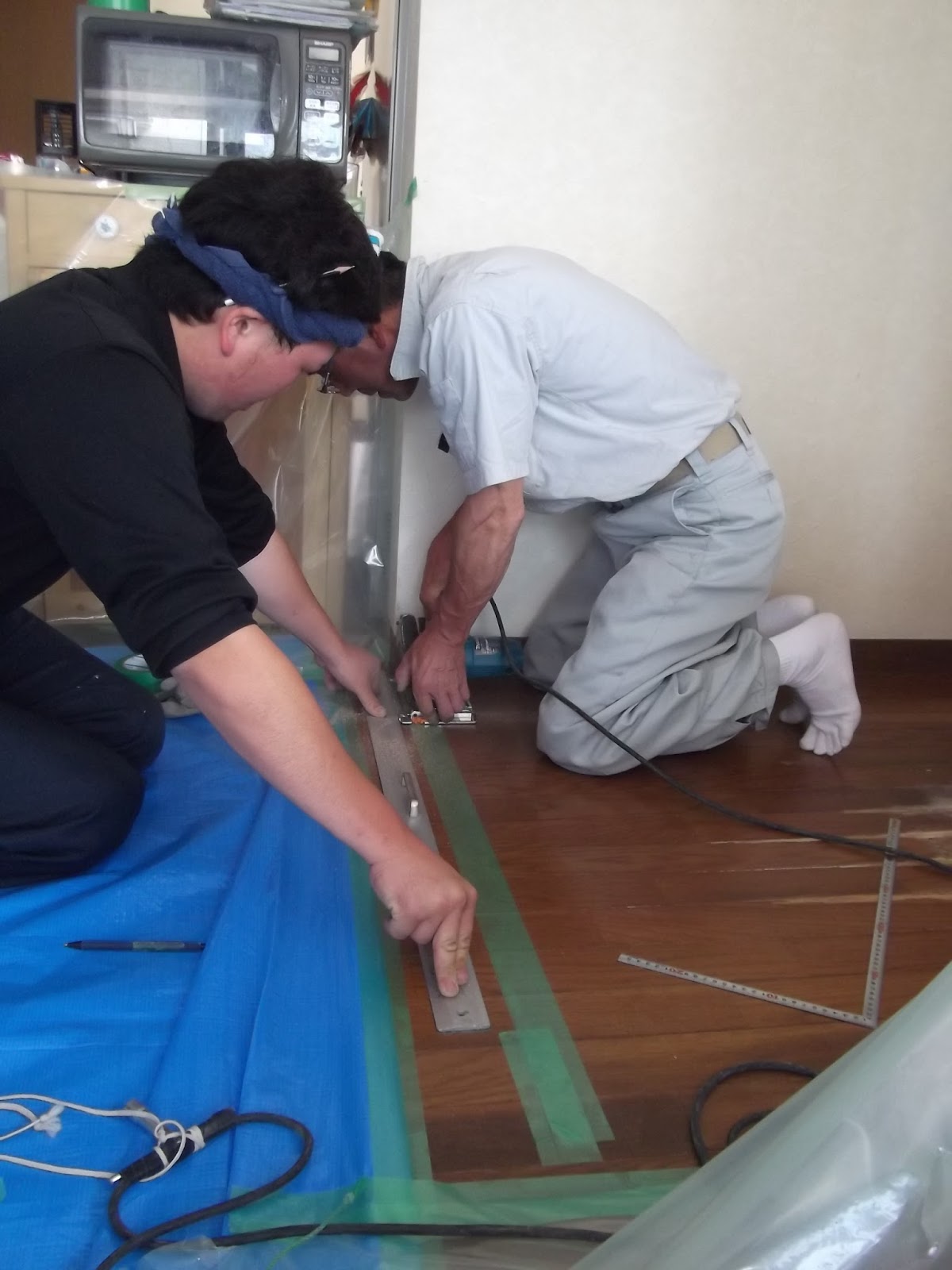 新しいフローリングと古いフローリングの境目は、今回見切り材という造作部材を利用しましたが、見切り材を使用しない方法でも施工は可能です。